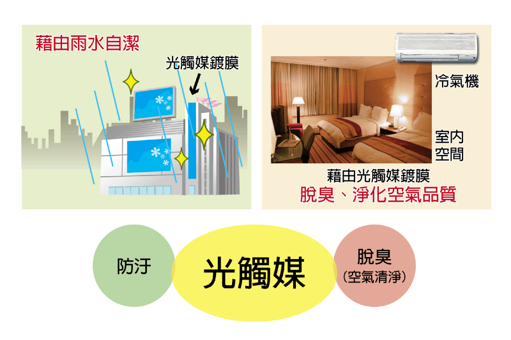 淨水、大氣淨化、防污、脫臭、防霧、抗菌